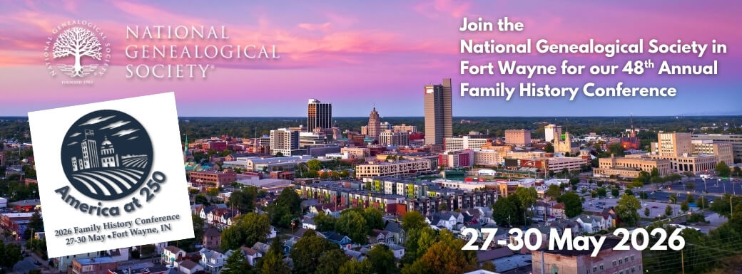 It’s time to register for the National Genealogical Society’s 2026 Family History Conference at Fort Wayne, Indiana, May 27-30, 2026. With the theme of “America at 250” the conference features a wide range of speakers and topics that will help shine a light on the stories, communities, and research strategies that help us understand our nation’s past and as well as preserve our family histories for the future.